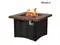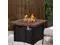 This fire table is mainly made of TerraFab (eco-friendly composite material). The color is dark brown woodgrain table top with cast iron stripe effect. This fire table ensures CAS-approved safety, enhanced quality, and improved performance for your everyday use. Each piece of the fire table is strictly tested before leaving the factory. It is easy to operate with the push-start ignition and adjustable flame option. 50, 000 BTU fire pit is durable.