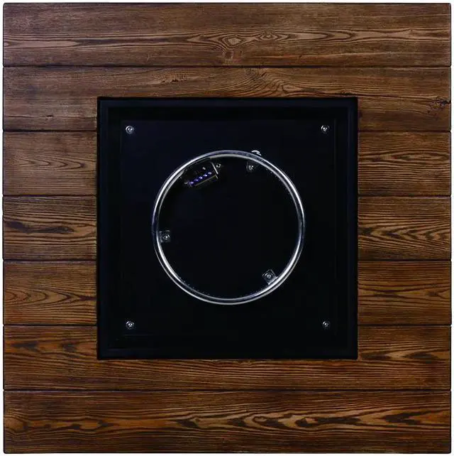 This fire table is mainly made of TerraFab (eco-friendly composite material). The color is rustic brown woodgrain table top with stacked travetine stripe effect. This fire table ensures CAS-approved safety, enhanced quality, and improved performance for your everyday use. Each piece of the fire table is strictly tested before leaving the factory. It is easy to operate with the push-start ignition and adjustable flame option. 50, 000 BTU fire pit is durable.