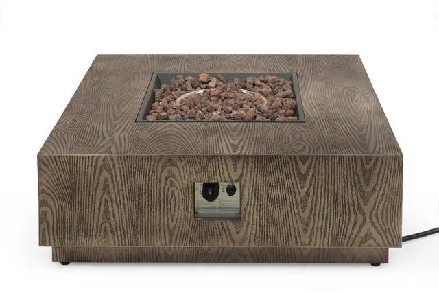 WELLINGTON SQUARE IRON WOOD PATTERN FIRE PIT -50,000 BTU Tank outside