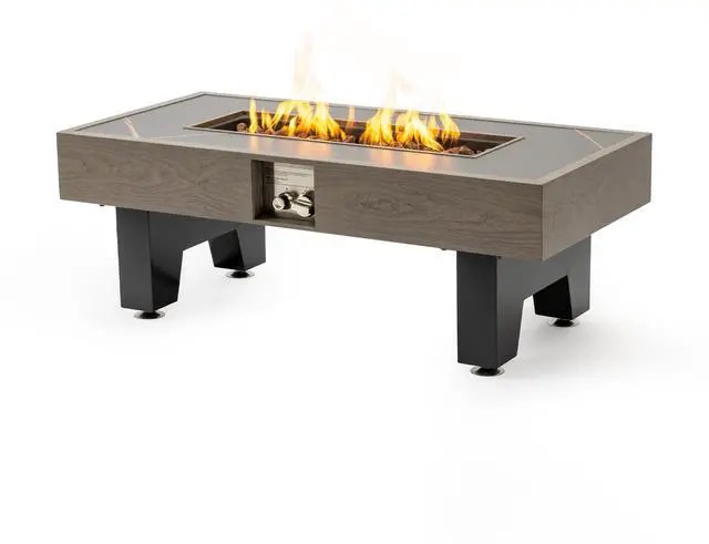 Modern Design & Durable Construction: Featuring a sleek, contemporary design with stone or walnut wood finish options, this outdoor fire table combines elegance and functionality. Built with a robust stainless steel burner bowl for low maintenance and heat resistance.