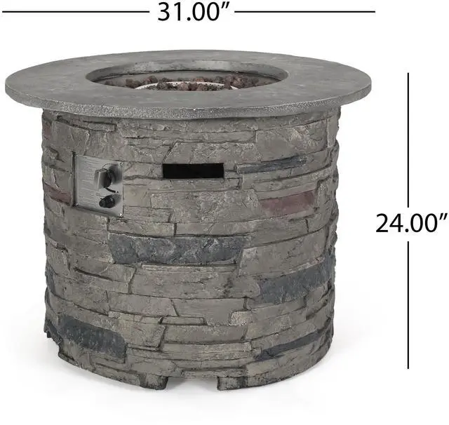 Modern Design: Our transitional fire pit table combines functionality and style to enhance your outdoor space. Crafted with lightweight concrete and featuring a natural stone finish with a gray top, this fire pit table exudes a classic and timeless design. The circular shape adds visual appeal and ensures a cozy seating arrangement for gathering around the fire.