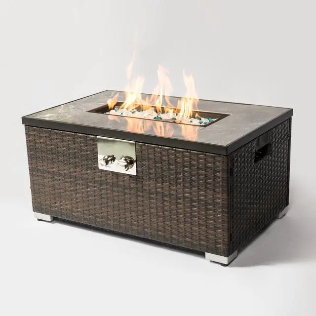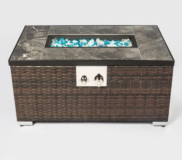 Effortless Assembly & Safety Priority: This tile-and-wicker propane fire pit table features a simple, user-friendly design, allowing solo assembly in under 20 minutes. Its intuitive ignition system ensures quick, seamless starts, while safety certifications provide peace of mind for worry-free use.