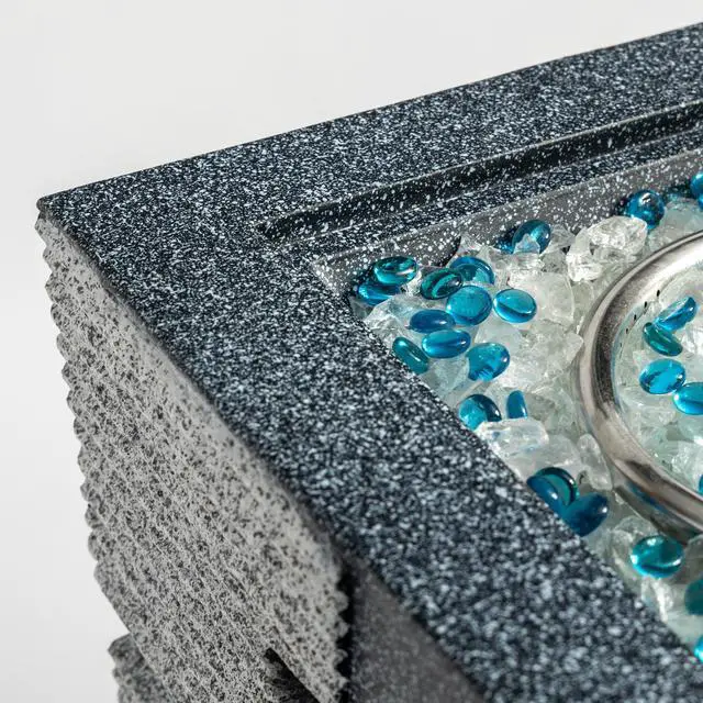 Smart safety meets style - This fire pit blends fashion and function through its contrasting gray-blue concrete texture, creating striking visual appeal. The center area perfectly displays glass stones for both beauty and purpose. Its sturdy concrete build guarantees stability and safety, letting flames dance worry-free for complete guest relaxation.