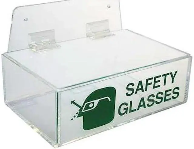Eyewear Dispenser, Capacity 6 Pairs, Center-to-Center Mounting Hole Spacing 6 in, Color Clear, Dispenser Contains Glasses, Goggles, Dispenser Layout 1 Box, Dispenser Orientation Horizontal, Dispenser Style Tray, Dispensing Method Hinged Lid, Includes Sponge Cushion, Material Acrylic, Mounting Location Cabinet, Countertop, Wall, Overall Depth 6 in, Overall Height 5 7/8 in, Overall Width 9 in. This item has been restricted from sale in the following state (s): []