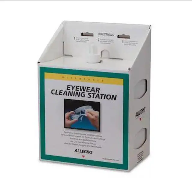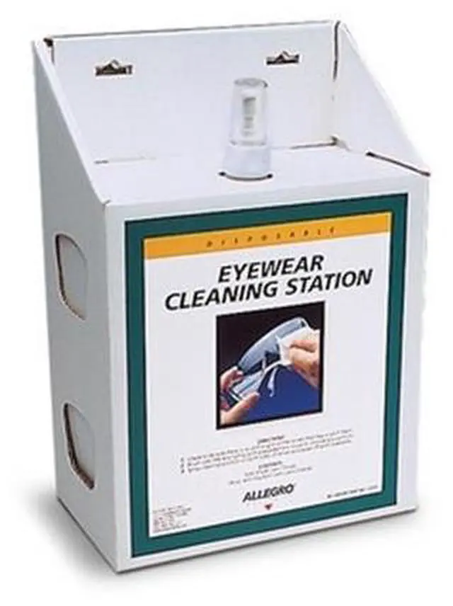 Large Disposable Cleaning Station, Anti-Fog, Anti-Static, Non-Silicone, Tissue Count 1200, Bottle Size 16 oz., Tissue Size 5 In. x 8 In., Station Height 12-3/4 In., Station Width 8-3/4 In., Station Depth 5 In., Wall Mounting Yes, Material Heavy-Duty Recyclable Cardboard, Includes Cleaning Solution With Pump and Tissues