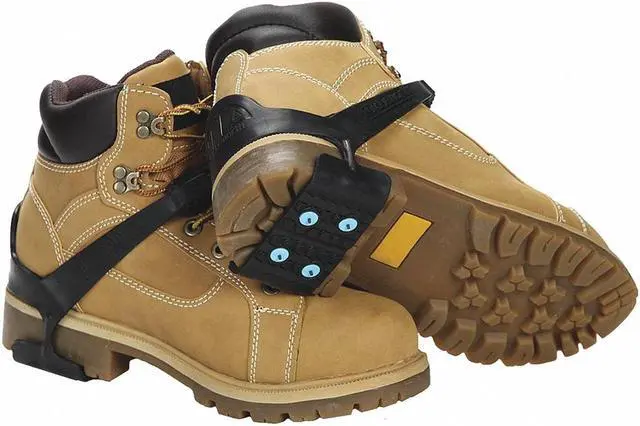 Traction Device, Footwear Coverage Style Heel, Upper Material Rubber, Traction Type Stud, 7 in L x 2-1/2 in W x 8 in H, Traction Material Tungsten Carbide, Traction Attachment Style Pull-On, Fits Shoe Size Universal, Black, Unisex, For Use on Surface Types Ice, Snow, Indoor, Outdoor, 1 Pair