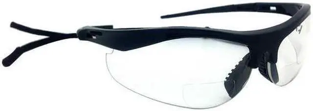 Bifocal Reading Glasses, +3.00 Diopter Strength, Clear Lens Color, Scratch-Resistant Lens Coating, Wraparound Eyewear Frame Design, Black Frame Color, Polycarbonate Frame Material, Polycarbonate Lens Material, Black Temple Color, Spatula Temple Style, 0.999 UV Protection, Eyewear Venting Non-Vented, X-Ray Detectable No, Includes Neck Cord, Standards ANSI Z87.1-2010, Eyewear Frame Style Half-Frame, Eyewear Size Universal, Series T101 Reader, Foam Lined No, 1 Pair
