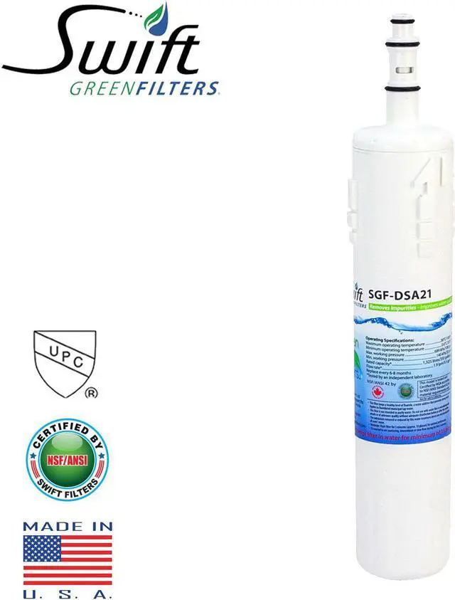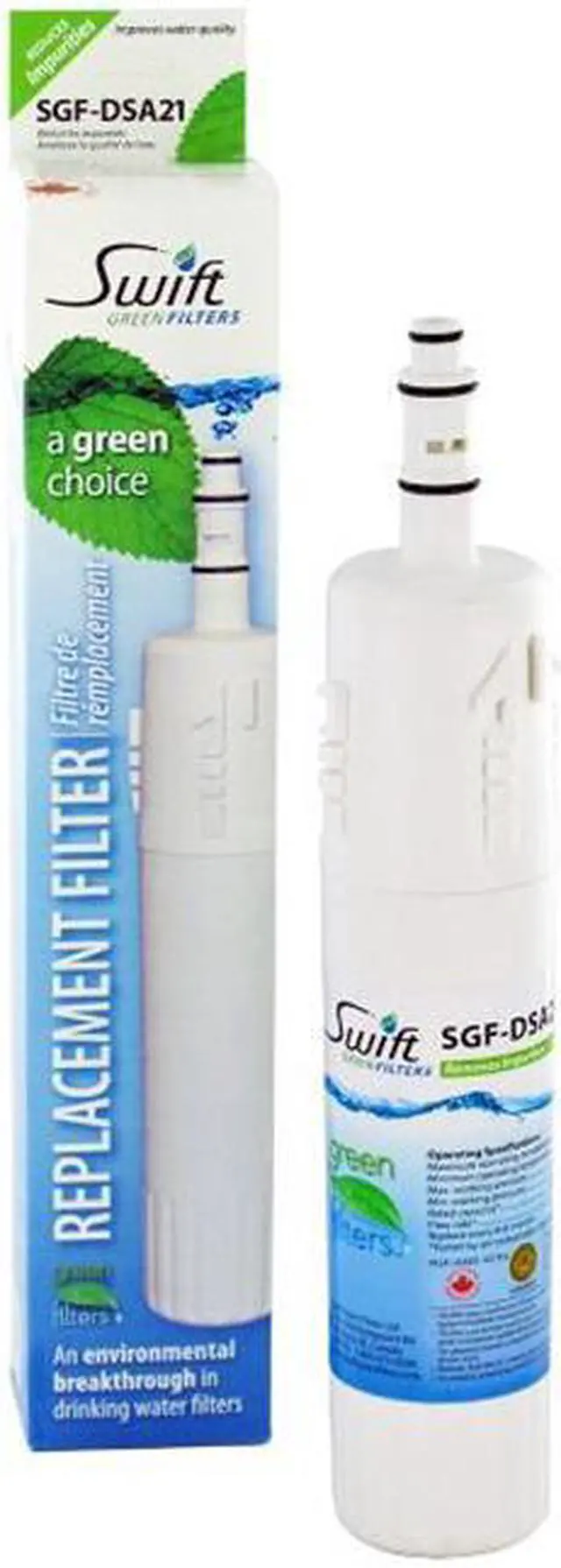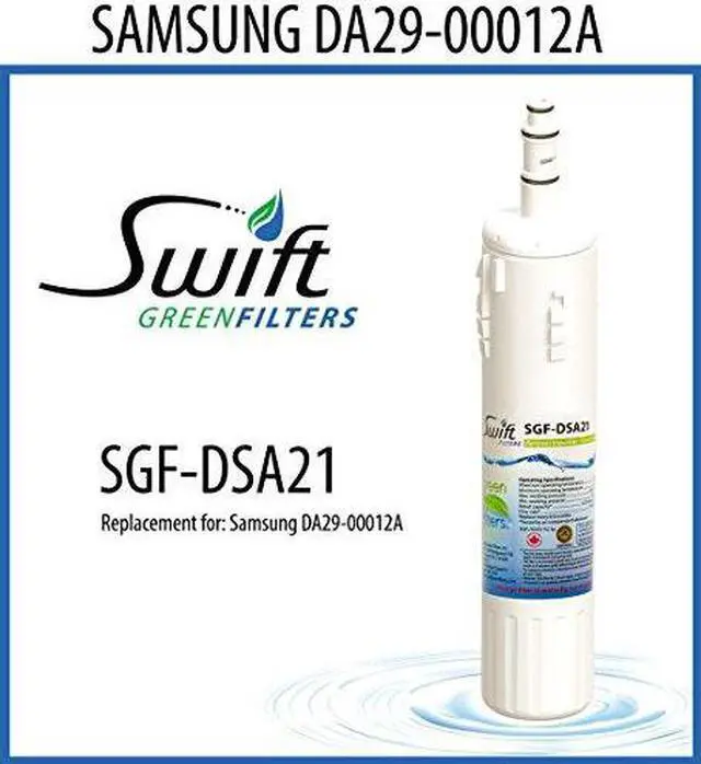 Swift Green Filters Replacement Water Filter SGF-DSA21 Replacement Water Filter for Samsung DA29-00012A,DA29-00012B, DA61-00159A Manufactured with high Technology to meet the industry standards and be the best in to preserve our nature. Swift Green Filters reduces Volatile organic compounds (VOC), Chlorine Taste & Odor (CTO), lead, Cyst mercury, asbestos and other contaminations