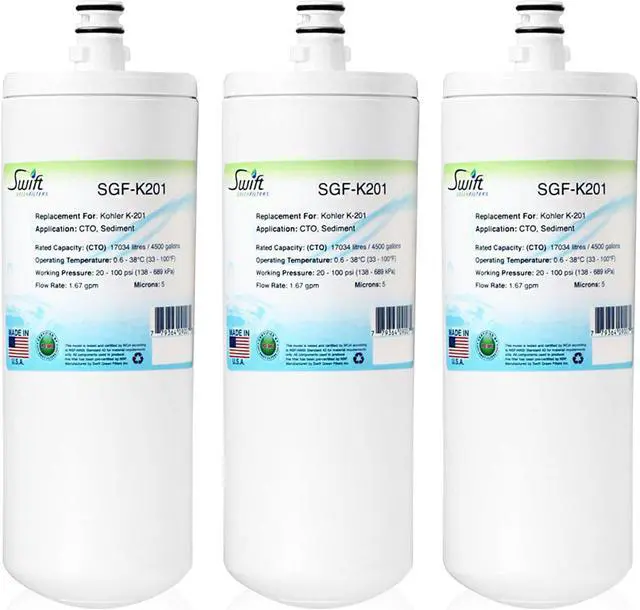 The Swift Green Filters SGF-K201 Compatible for Kohler K-201 Commercial Water Filter providing fresh, clean, and great tasting drinking water. This high quality filter reduces: Volatile organic Compounds, chlorine taste and odor - sediment, dirt and rust. Our filters are made with activated carbon produced using a new technology that carbonizes dried coconut shells.