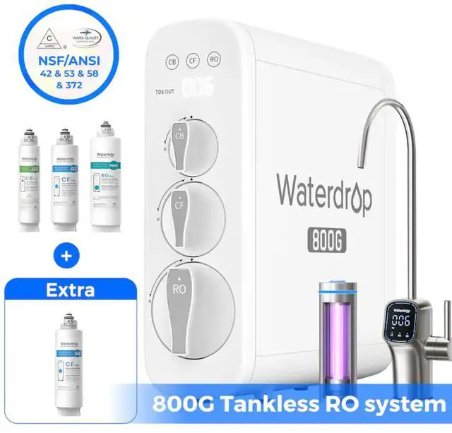 The Waterdrop G3P800 reverse osmosis system offers a higher water capacity (800 gallons per day), thereby meeting demands of a big family for pure water. Furthermore, by high water flow, it filters one cup of water in just 5s. By an advanced water dispensing technology, this tankless RO water filter system produces just a cup of wastewater for every three cups of filtered water produced.