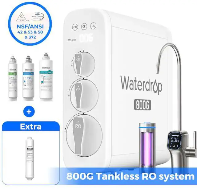 • The Waterdrop G3P800 reverse osmosis system offers a higher water capacity (800 gallons per day), thereby meeting demands of a big family for pure water. Furthermore, by high water flow, it filters one cup of water in just 5s. By an advanced water dispensing technology, this tankless RO water filter system produces just a cup of wastewater for every three cups of filtered water produced.