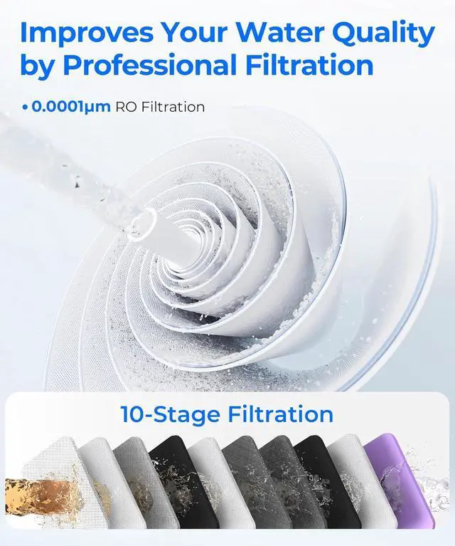 Tested by official third-party laboratory (SGS), through 10-stage filtration, G3P800 can effectively reduce PFAS, fluoride, heavy metals like lead, chromium, iron, salts like nitrate and chloride as well as large particles and radioactive substances such as radium. Our RO system can reduce such as vinyl chloride, ethylhexyl acrylate, isobutylene, monobutyl ether, according to the reverse osmosis membrane technical manual.