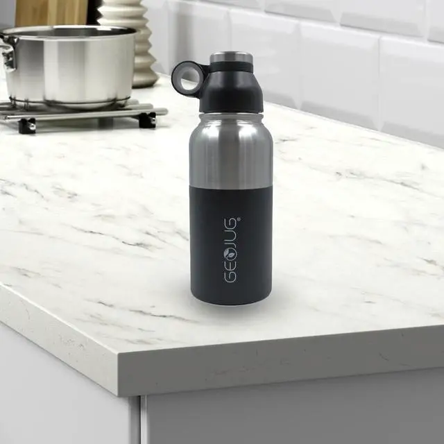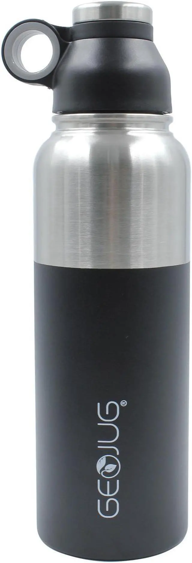 Brentwood Appliances G-1040BK GeoJug 40-Ounce Stainless Steel Vacuum-Insulated Water Bottle (Black)Hot up to 10 hours, cold up to 24 hoursTasteless & odorless pro-grade 18/8 stainless steelSweat-free double-wall insulationEasy-to-fill extra wide mouthSlip-free powder coat finish1-year limited warrantyIncludes BPA-free flip & sip cap with carry handleBlackGeoJug 40-Ounce Stainless Steel Vacuum-Insulated Water Bottle (Black)