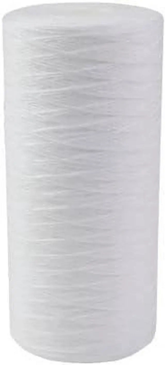 String Wound Sediment Filter, Full Flow 4 1/2 IN x 9 3/4 IN, Micron This 10 IN micron full flow 4 1/2 IN outside diameter string wound sediment filter cartridge is made of 100 percent polypropylene string for excellent chemical resistance and high quality food grade ingredients for potable water.