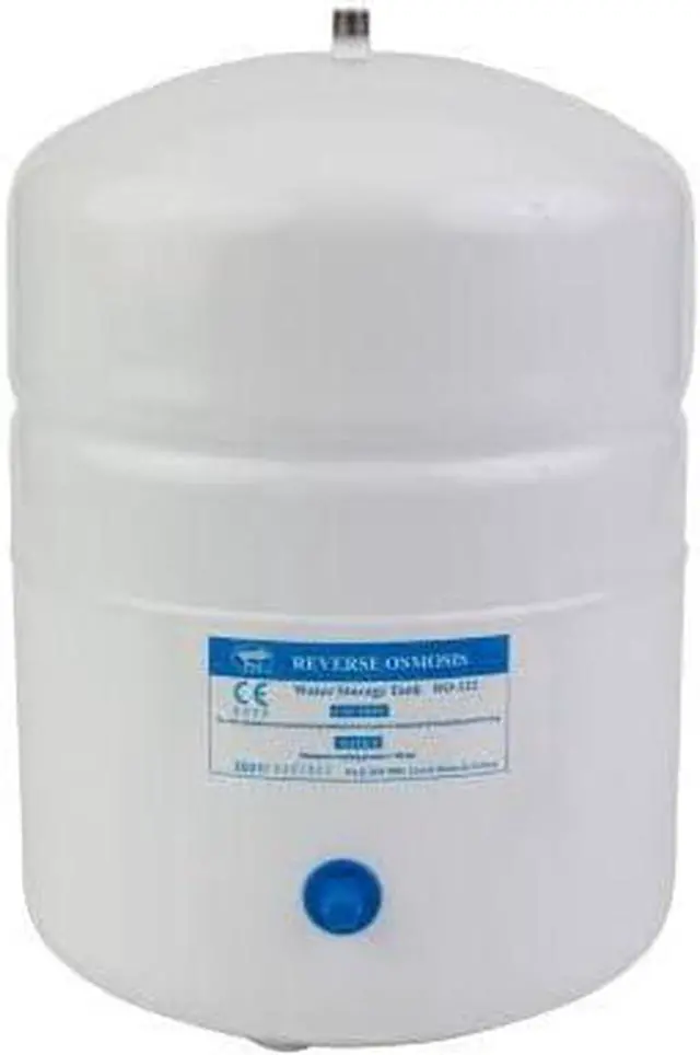 Metal Tank for RO Storage, 10 IN x 15 IN, 3.2 Gallon Capacity, 1/4 IN NPT, White This metal RO storage tank is assembled using a virgin polypropylene liner, high-grade chlorobutyl diaphragm, and a patented stainless steel water connection.