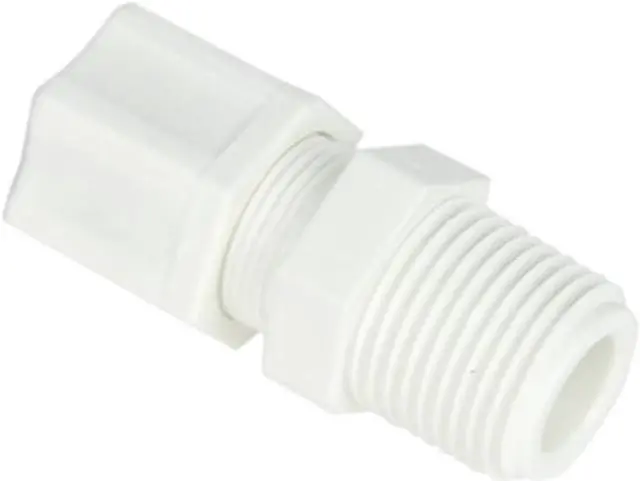 MPT Fitting Material: polypropylene Ferrule nut with plastic gripper for use with plastic tubing