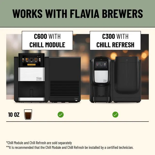 EXCLUSIVELY FOR: Can only be used with Flavia Creation 300 with Chill Refresh Unit and Flavia Creation 600 with Chill Module. With the Chill Module and Refresh, brew authentic cold drinks, no ice needed Installation from a technician may be required