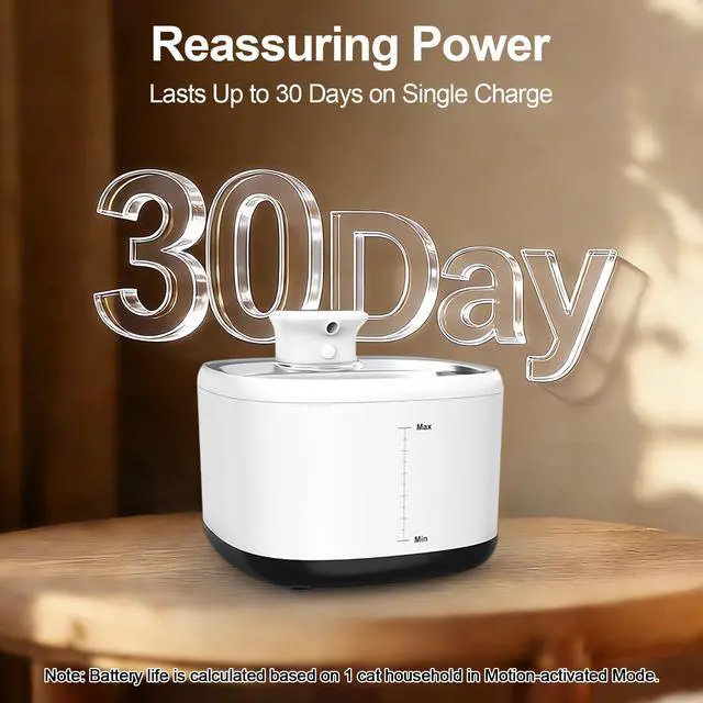 Built-in 2000mAh Battery True Wireless & Cordless Pet Fountain: Equipped with a high-capacity 2000mAh rechargeable battery, this cordless cat water fountain eliminates the hassle of cables and allows flexible placement anywhere in your home. Perfect for kitchen, bedroom, living room, or even covered outdoor spaces. This wireless pet water fountain ensures continuous hydration even during short power outages or when outlets are limited