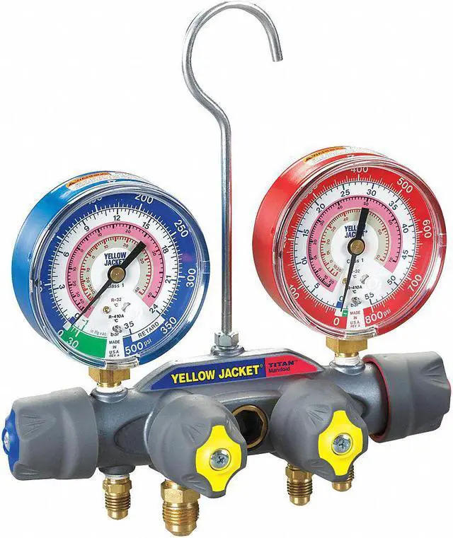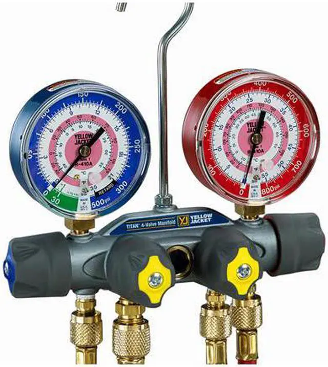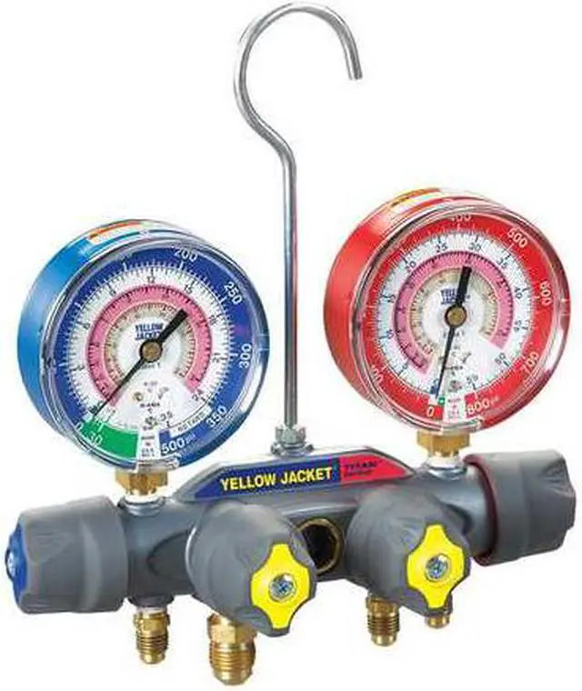 Valve readout options on our manifold gauge sets include options for either analog meters or digital displays. Take a look at the features for Yellow Jacket Mechanical Manifold Gauge Set. Material: Forged Aluminum Alloy, Number Of Valves: 4.
