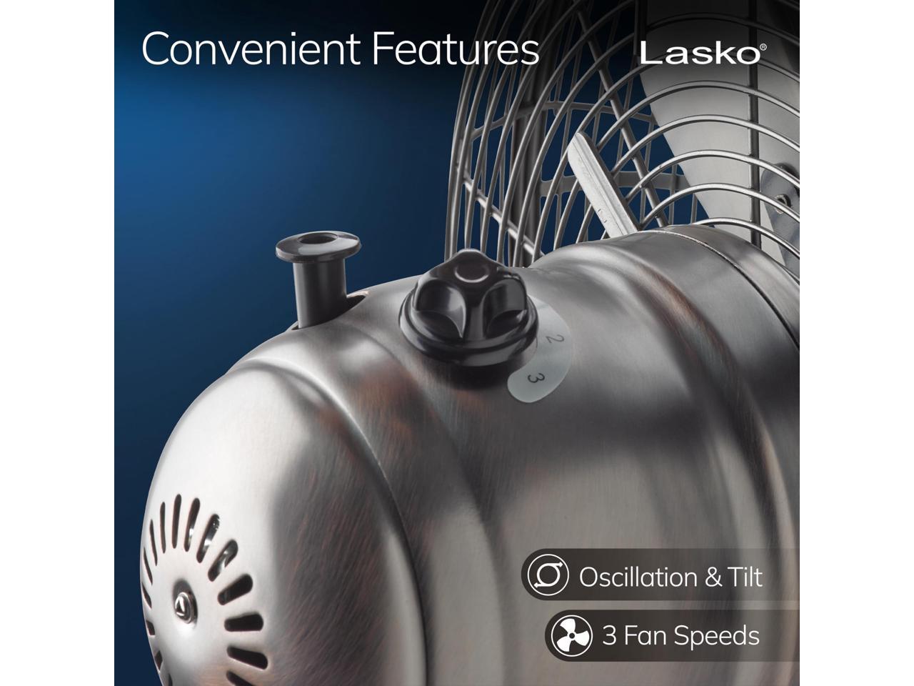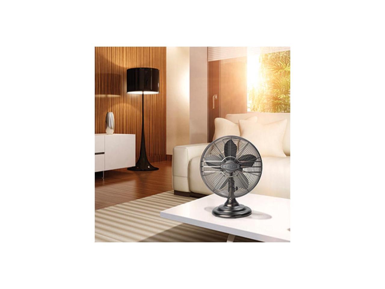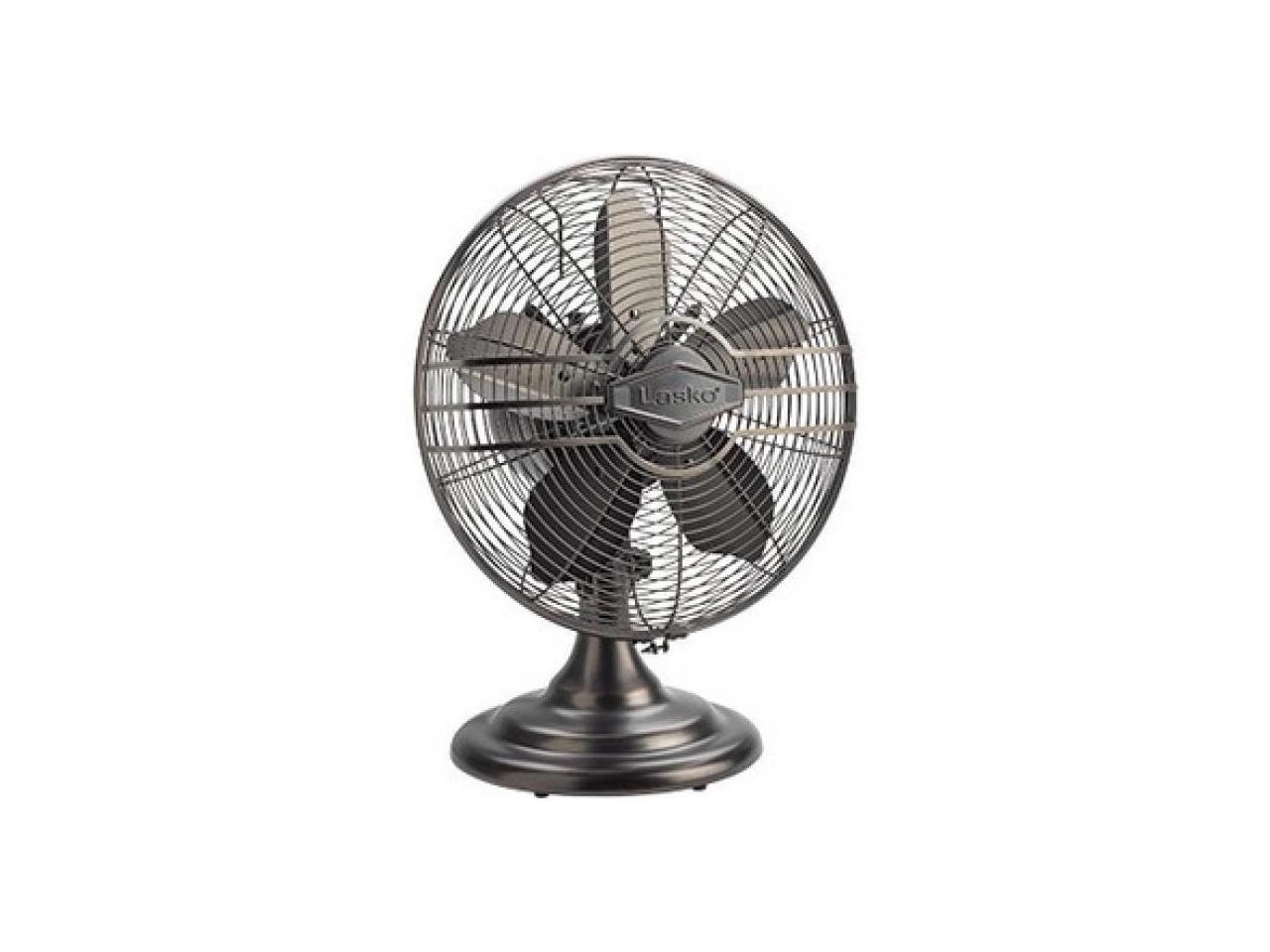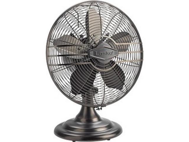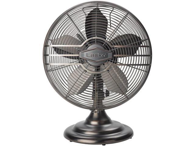 • ll-metal, vintage design - A beautiful, retro-style table fan (at 17.25" x 13.25" x 10.25") that fits perfectly on your desk at work, a bedside table, or on a countertop; Weighs 9.32 lbs, so it feels sturdy and durable High quality construction - Outer body is made of all metal with a gorgeous oil-rubbed bronze finish; Includes a built-in carry handle.