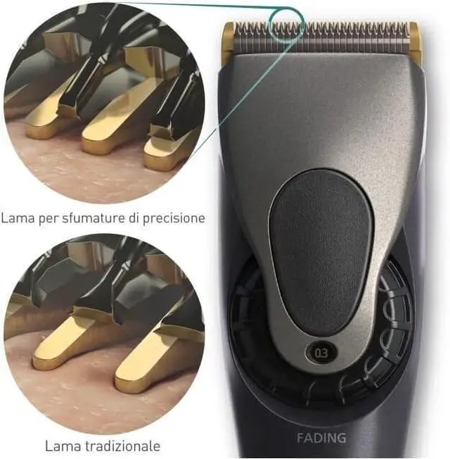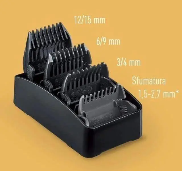 - 4 combs for 8 cutting lengths: 1.5 - 2.7 mm, 3-4 mm, 6-9 mm, 12-15 mm