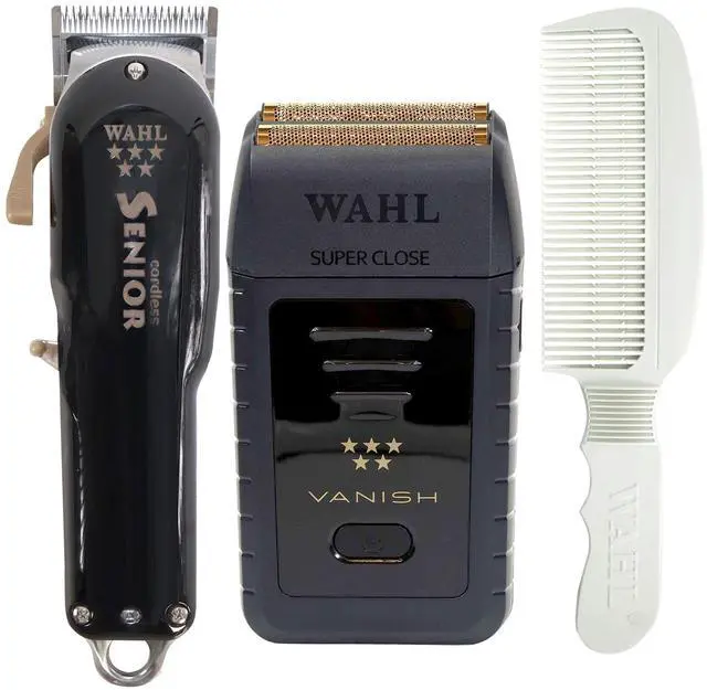 WAHL 8504 PROFESSIONAL CLIPPER CORDLESS SENIOR 120-240V + WAHL 5 STAR VANISH SHAVER 8173-700 (DUAL VOLTAGE) + WAHL FLAT TOP COMB Wahl 8504 Professional Clipper Cordless Senior 120-240V From Wahl Professional line of commercial-grade products designed for the busy barber, the 5 Star Series line provides the precision and power for your multi-cultural customers. The Senior 5 Star Series Cordless Clipper is designed for professional use only and is designed to deliver the crisp performance that experts demand.