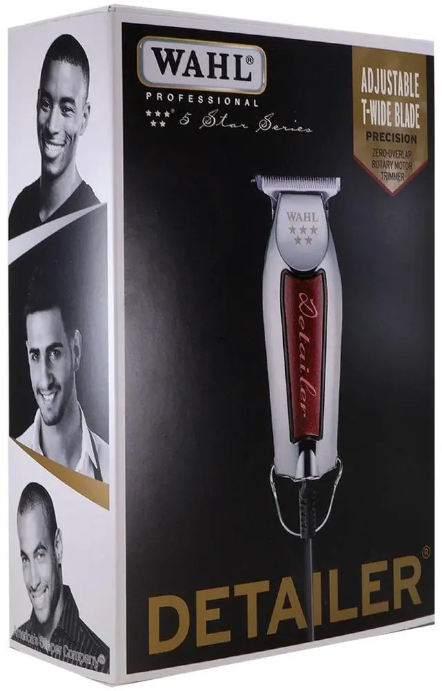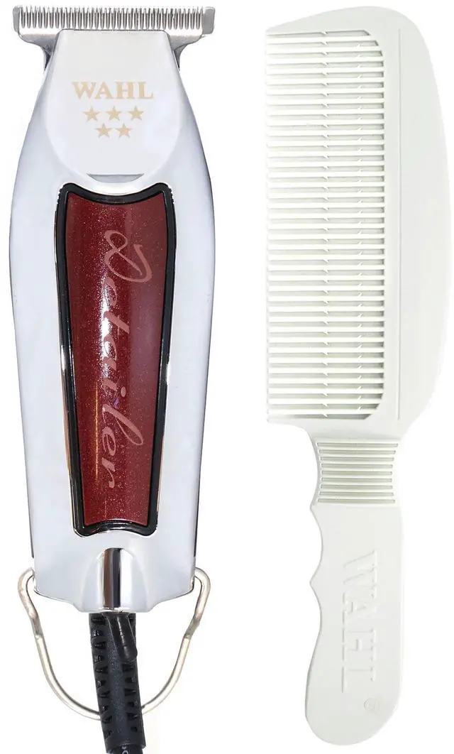 WAHL PROFESIONAL 5 STAR SERIES DETAILER TRIMMER #8081 + WAHL FLAT TOP COMB WHITE #3329-100 Wahl 5 Star Detailer Trimmer #8081 Your barbers favorite precision trimmer: the 5 Star Detailer. This tool is designed for extremely close trimming, creating crisp clean lines, facial hair detailing and design, and detailed hair tattooing. Equipped with a t-wide blade (1/4 wider than a standard Wahl t-blade), the extended blade cutting area produces faster cutting results, convenient for both you and your clients. Its all in the details with this precision barber trimmer!