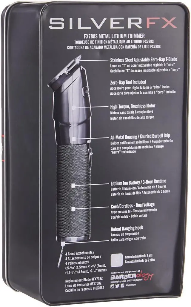Silver Metal Cordless Trimmer is a cord/cordless lithium trimmer. It is a perfect tool for outlining, designs and all other fine work. A perfect tool to add to any barber/stylist collection.
