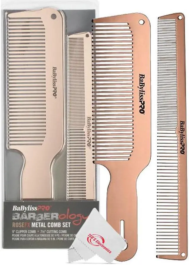 - BaByliss Pro Barberology RoseFX Metal Comb Set 9" Clipper Comb and 7.5" Cutting Comb Rose Gold