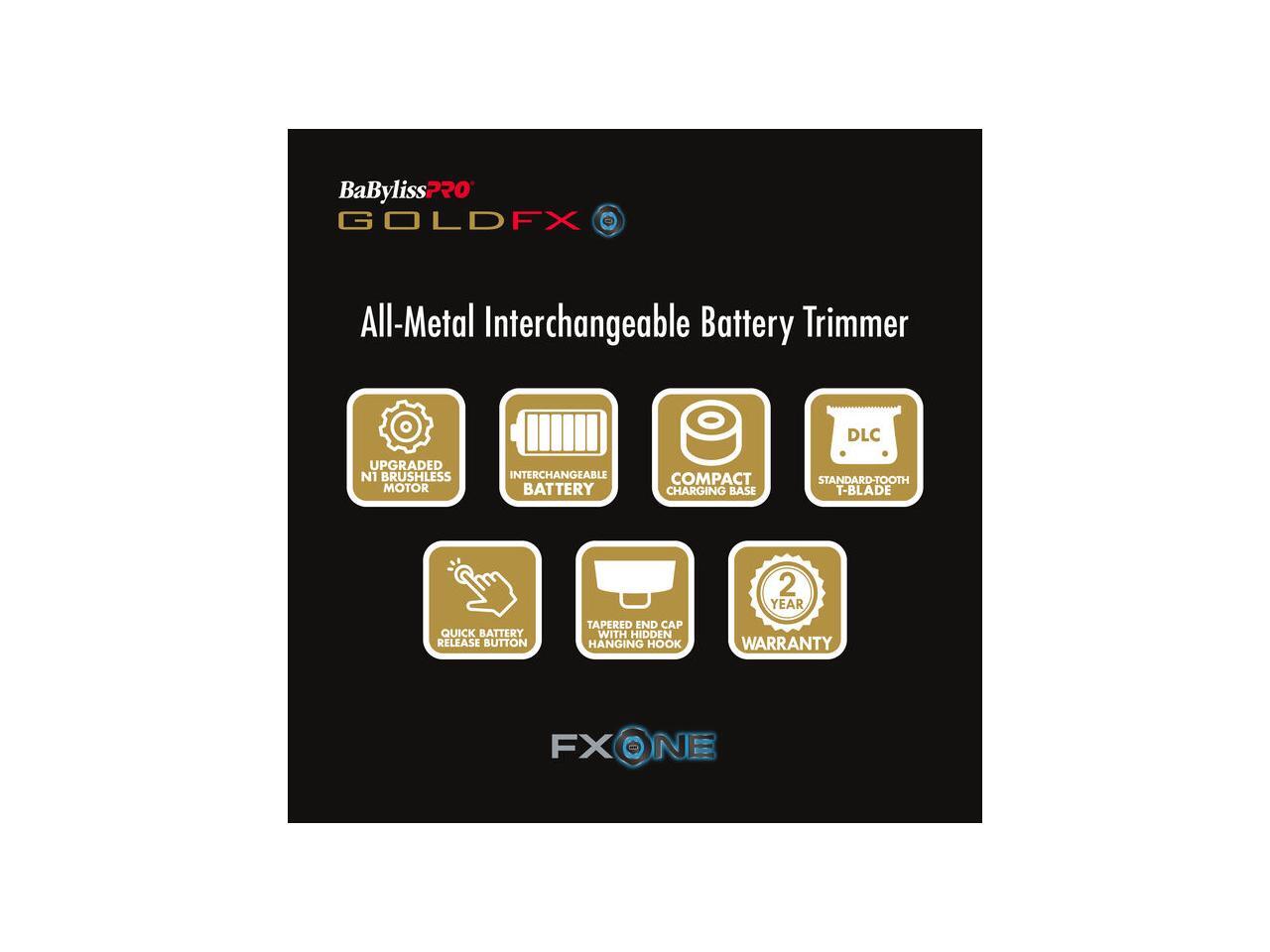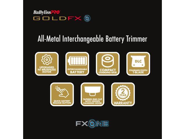 BaBylissPRO FXONE™ GOLDFX Trimmer, Professional Cordless Outlining Trimmers for Men with Interchangeable Battery, FX799G