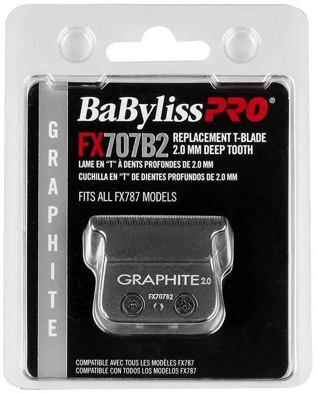 BaByliss PRO Deep Tooth Graphite Replacement Blade This Deep Tooth Graphite Replacement Blade can be used with any FX787 trimmer. Use this ultra-thin, adjustable T-blade for an ultra-precise, clean cut. Features graphite 2.0 mm deep tooth. This replacement t-outliner blade is great for cutting crispy edge ups, hard lines and all other fine detail work. When the blade on your BaBylissPRO FX787 is dull, change it out with this replacement t-blade.