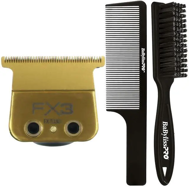 BABYLISS PRO FX703G FX3 DLC TITANIUM ULTRA THIN BLADE ZERO GAP BLADE + FADE BRUSH BPFADEB + 9" CLIPPER COMBBaByliss Pro Fx3 Trimmer DLC Titanium Ultra-Thin Zero Gap Replacement Blade FX703G- Fits FXX3T model