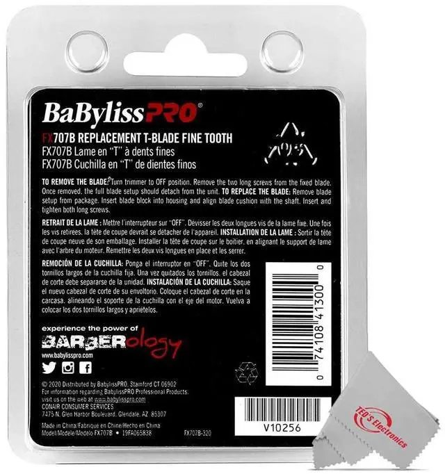 This Bundle from Teds Electronics includes:- BaByliss Pro FX707B Graphite Fine Tooth Replacement T Blade Fits All FX787 Models