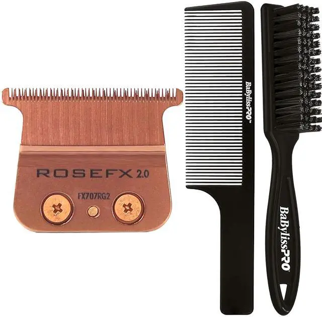 BABYLISS PRO ROSE GOLD FX707RG2 REPLACEMENT DEEP TOOTH T-BLADE 2.0MM + FADE BRUSH BPFADEB + 9" CLIPPER COMBBaByliss Pro Replacement Deep Tooth RoseFX T-Blade