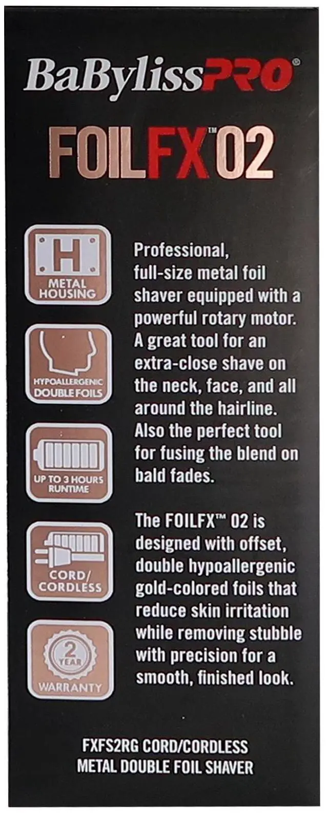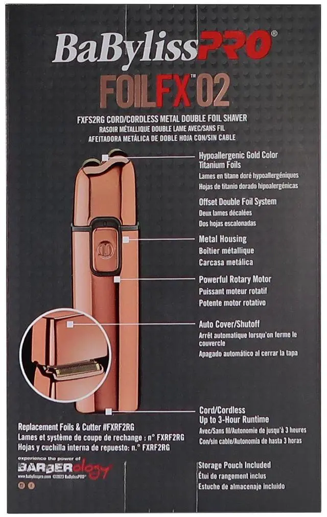This Bundle from Teds Electronics includes:- BaByliss PRO FOILFX02 Cordless Metal ROSE GOLD Double Foil Shaver FXFS2RG