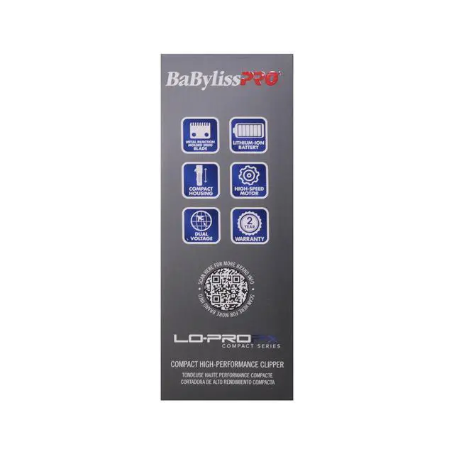 BaBylissPRO® LO-PROFX Compact Series Clipper The LO-PROFX COMPACT SERIES Compact High-Performance Clipper features an ultra-low profile metal shield cover and ergonomic grip housing. Its powered by a high-speed DC motor 6,800RPM, with a high-capacity lithium-ion battery. It is made with durable and scratch-resistant aluminum anodized housing.