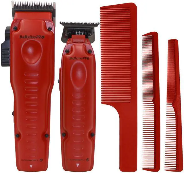 BABYLISS PRO FXONE LO-PROFX HAIR CLIPPER, TRIMMER, CHARGING BASE AND BOOSTED CAPACITY BATTERY (RED) FX129MRPK + BABYLISS PRO BARBEROLOGY COMB SET (CLIPPER, CUTTING, TAPER COMBS) - RED