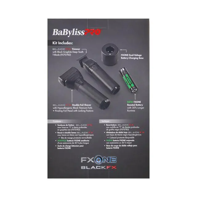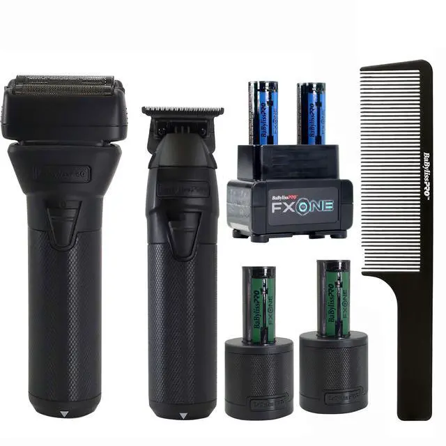 BABYLISS PRO FXONE BLACKFX LIMITED EDITION PREPACK - STICK SHAVER, OUTLINING TRIMMER (BLACK) FX1FSTMBPK WITH FXONE DUAL-CHARGING PREPACK FXC2BPPK AND COMB