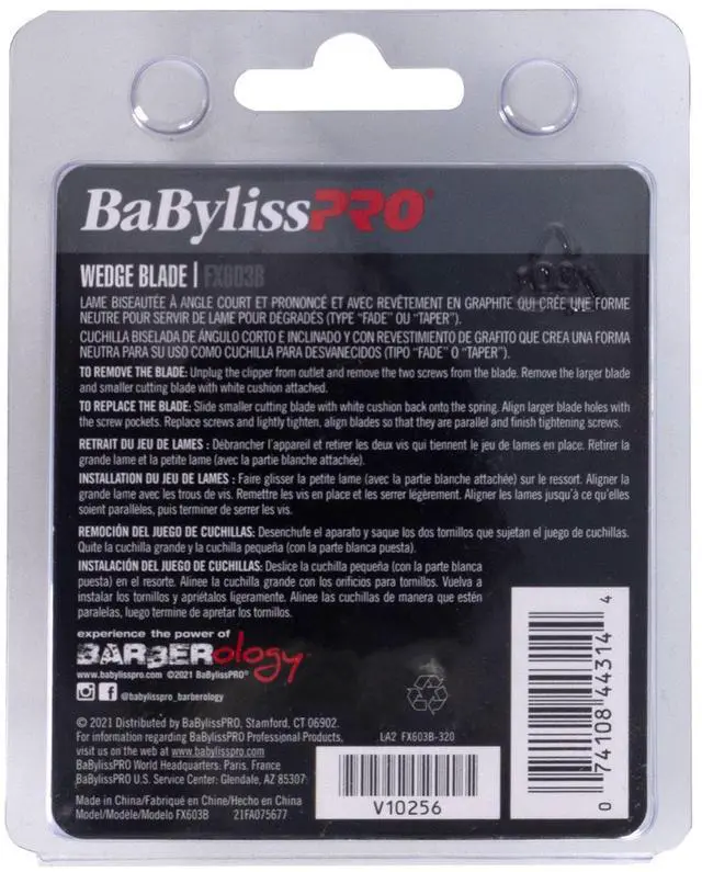 BaByliss Pro Black Graphite Wedge Clipper BladeThe Black Graphite Wedge Blade is a cutting-edge tool designed to elevate your styling game. This wedge blade is engineered for precision cutting, enabling you to create ultra-precise and clean cuts with ease. The blade's unique wedge shape allows for versatility in styling, making it perfect for both vertical and horizontal cutting motions. Whether you're working on fades or intricate designs, this blade delivers exceptional results. It boasts ultra-low friction for seamless styling, ensuring a smooth and comfortable experience for your clients. Compatible with all two-hole blade systems, including the BaBylissPRO SilverFX+ All-Metal Lithium Clipper