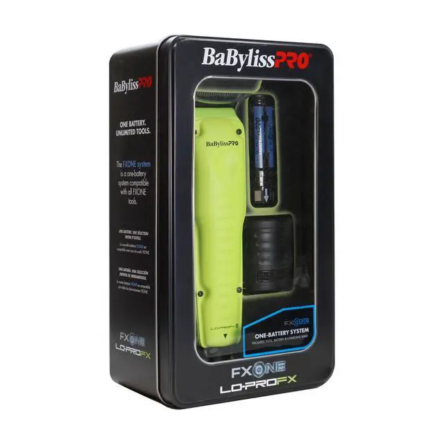 BABYLISSPRO FXONE LO-PROFX LIMITED EDITION NEON YELLOW CLIPPER WITH CHARGING BASE & BATTERY FX829 BARBER ESSENTIAL BUNDLEBaByliss Pro FXONE Lo-ProFX Limited Edition Neon Yellow Clipper (Kit Includes Charging Base & Battery) Designed with advanced N1 brushless motors, both the clipper and trimmer deliver exceptional cutting performance, high efficiency, and long-lasting durability.