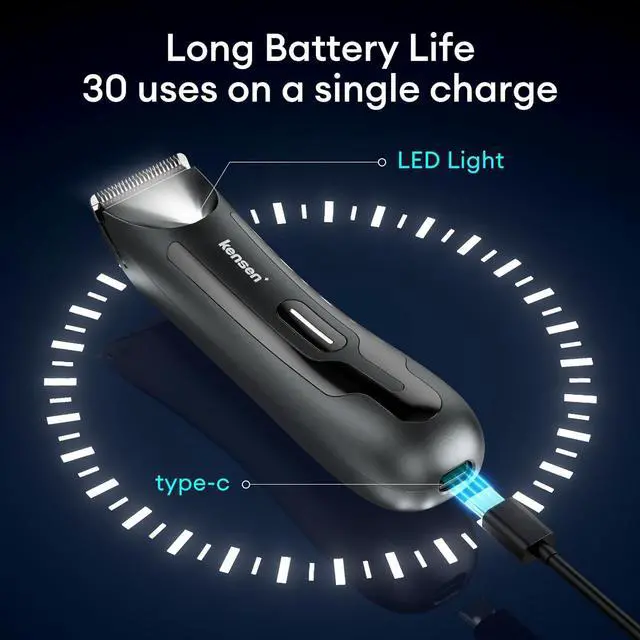 USB Rechargeable & LED Light The built-in lithium battery of this electric trimmer is powerful and durable. The special built-in LED light helps to easily trim your hair in low light, ensure you have a safe and close shave experience.