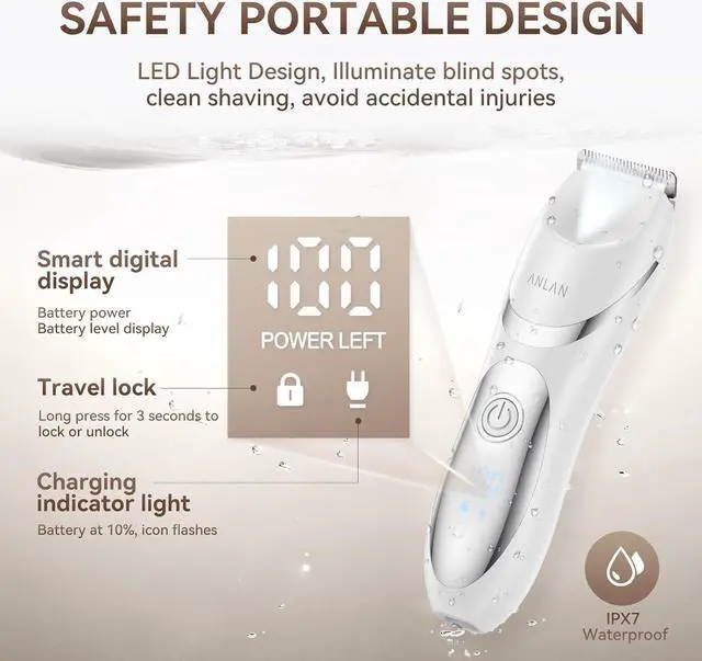 IPX7 WATERPROOFThis electric rechargeable body shaver is with IPX7 proof design for both wet and dry use. The washable and removable ceramic head is easy for cleaning and maintenance. it' s a trimmer men and women can depend on!