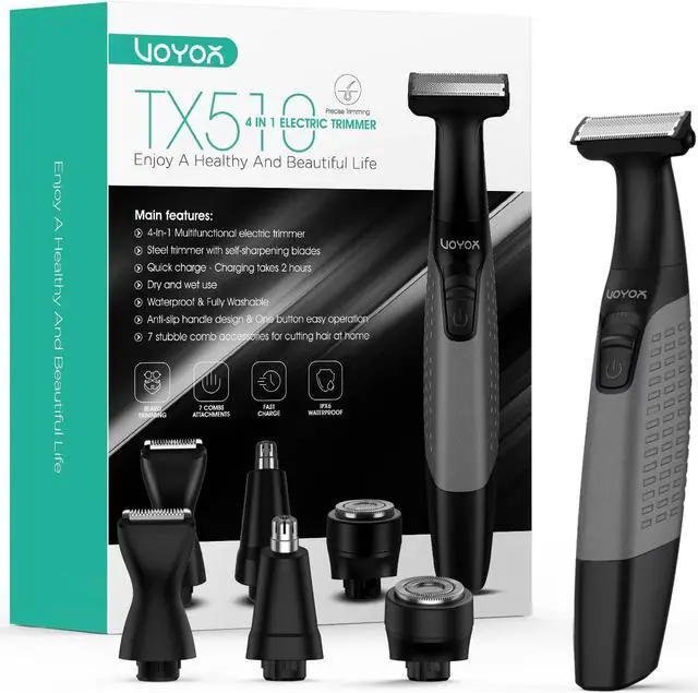 VOYOR Beard Trimmer for Men Electric Razor, Nose Face Body Hair Trimmer with Adjustable Length Combs All in 1 Rechargeable Mens Grooming Kit Cordless Electric Shaver Mens Gifts Wet/dry TX510 (Grey)
