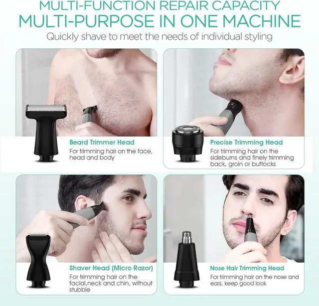 Multifunctional trimmer kit - This kit comes with 4 accessories: full-size trimmer/precision trimmer/nose trimmer/micro razor. It is also equipped with 7 guide combs (1, 2, 4, 6 mm for full-size trimmers and S, M, L for precision trimmers) to tailor your style more selectively.