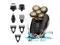 comes with 5 attachments: a rotating shaver, nose hair trimmer, hair clipper with 3 guide combs, silicone brush, and a facial cleansing brush.