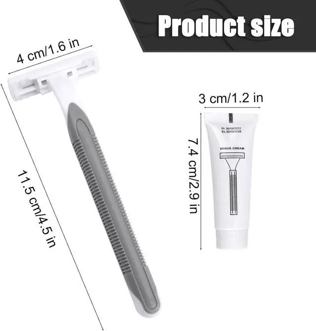 Reliable processDisposable razor kit is made of high-quality materials, twin blade razors, sturdy and durable. Disposable shaving set includes a shaver and shaving cream (10ml). The matched shaver set can provide you with an easy and clean shaving experience.