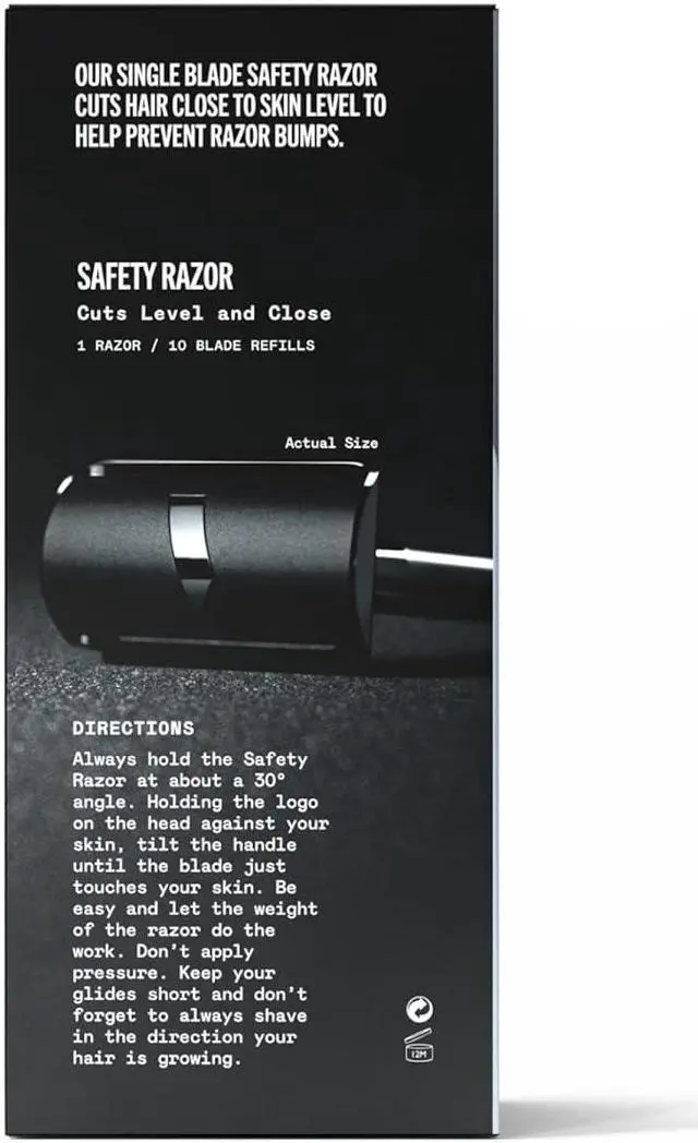 For Best Use: Always hold the Safety Razor at a 30° angle. Holding the Bevel logo, on the head of the razor, against your skin, tilt the handle until the blade just touches your skin. Be easy and let the weight of the razor do the work, dont apply pressure. Keep your glides short and dont forget to always shave in the direction your hair is growing.