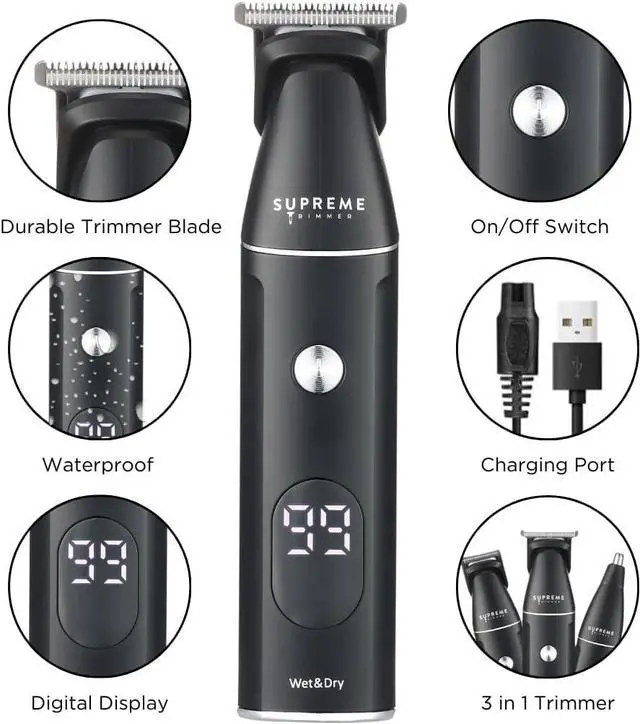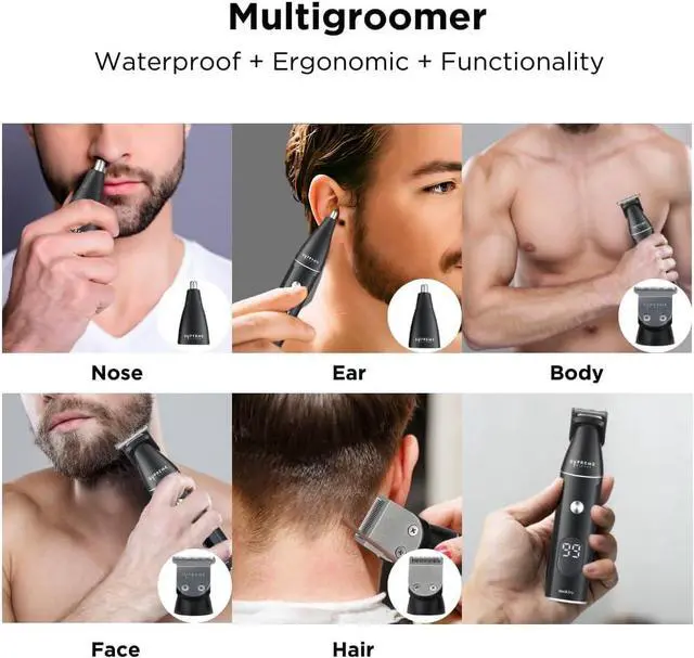 TRAVEL LOCK: Enhancing its portability, our All-in-One Trimmer set features a convenient Travel Lock function displayed on your screen. Simply hold the button for 3 seconds, and your trimmer securely locksmaking it an ideal travel companion.