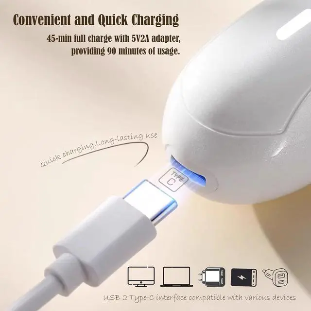 Convenient and Quick Charging: Equipped with a globally standardized Type-C interface, this shaver can share a charging cable with multiple devices. This prevents waste and the issue of lost cables. Furthermore, the efficient battery fully charges in 1.5 hours with a 5V1A adapter, providing up to 90 minutes of continuous use. It' s also compatible with phone adapters (9V 1.67A or 5V2A), achieving a full charge in just 45 minutes. (Adapter not included)