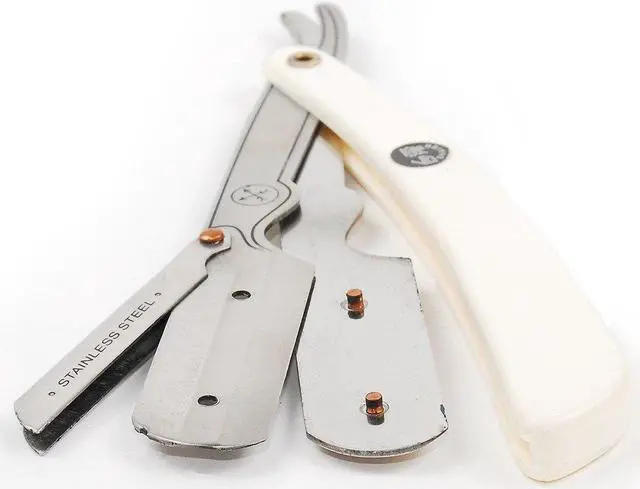 STURDY CONSTRUCTION: Designed to provide quality shaving, this straight razor has a stainless steel blade arm and a handle made of durable white resin.